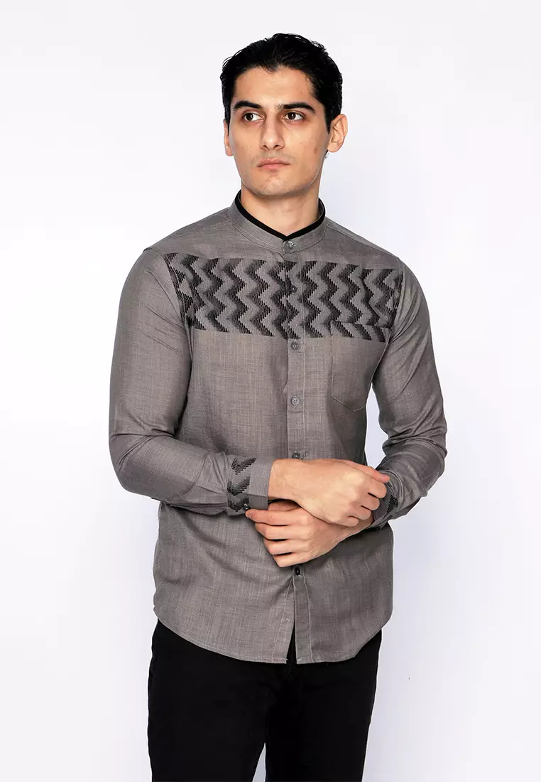 Casella Baju Koko Pria Lengan Panjang Horizontal Design | Koko Lengan Panjang Hadid 9915 Grey