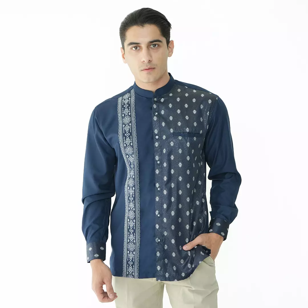 Casella Baju Koko Pria Lengan Panjang Premium | Baju Koko Batik Riyadh 9985 Navy