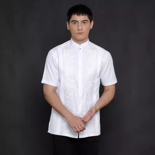 Casella Baju Koko Pria Lengan Pendek Bordir Pleats Design 4907 White