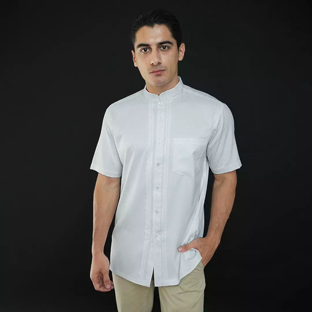 Casella Baju Koko Pria Lengan Pendek Pleats Ilyas | Baju Koko Putih Lengan Pendek 4101 White