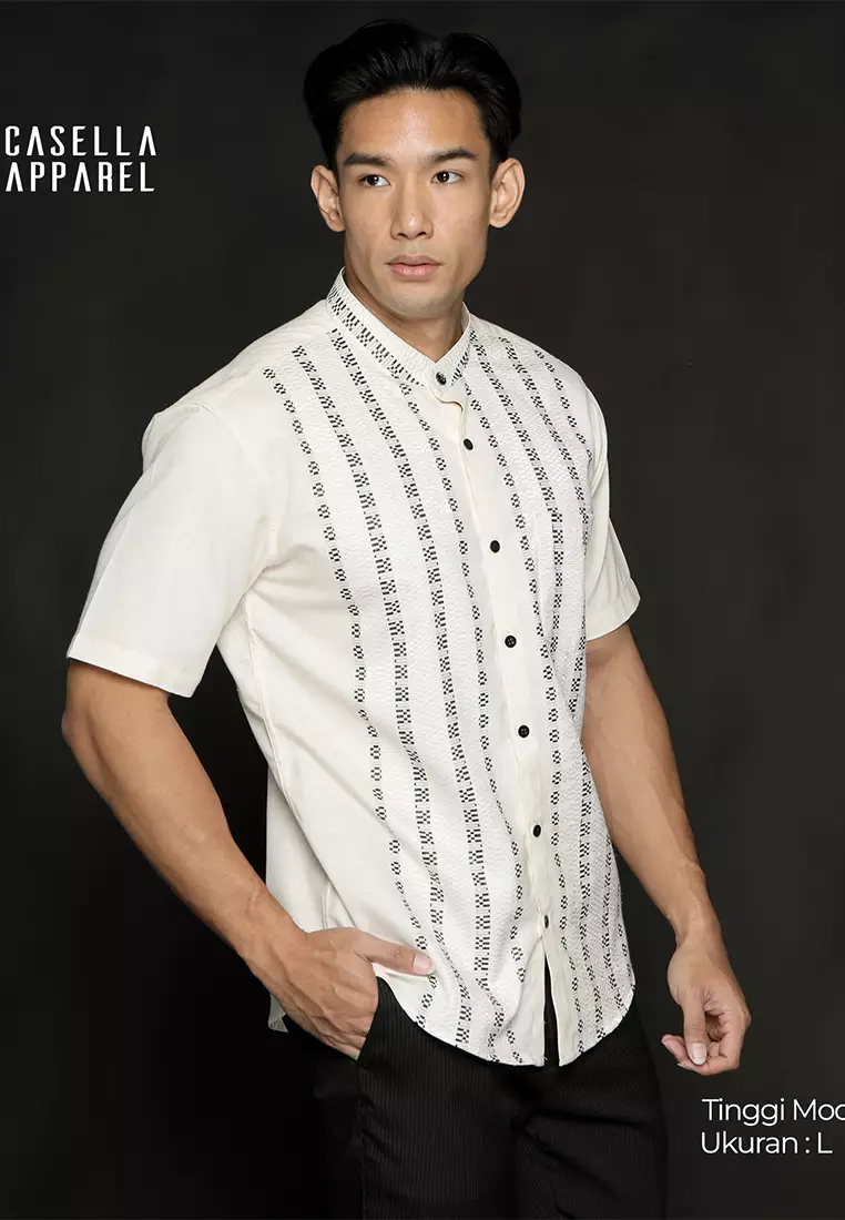 Casella Baju Koko Pria Lengan Pendek Vertical Pattern | Baju Koko Lengan Pendek Khalid 4051 Beige