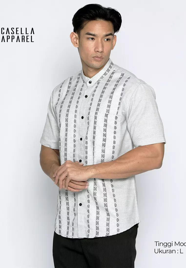 Casella Baju Koko Pria Lengan Pendek Vertical Pattern | Baju Koko Lengan Pendek Khalid 4051 Grey