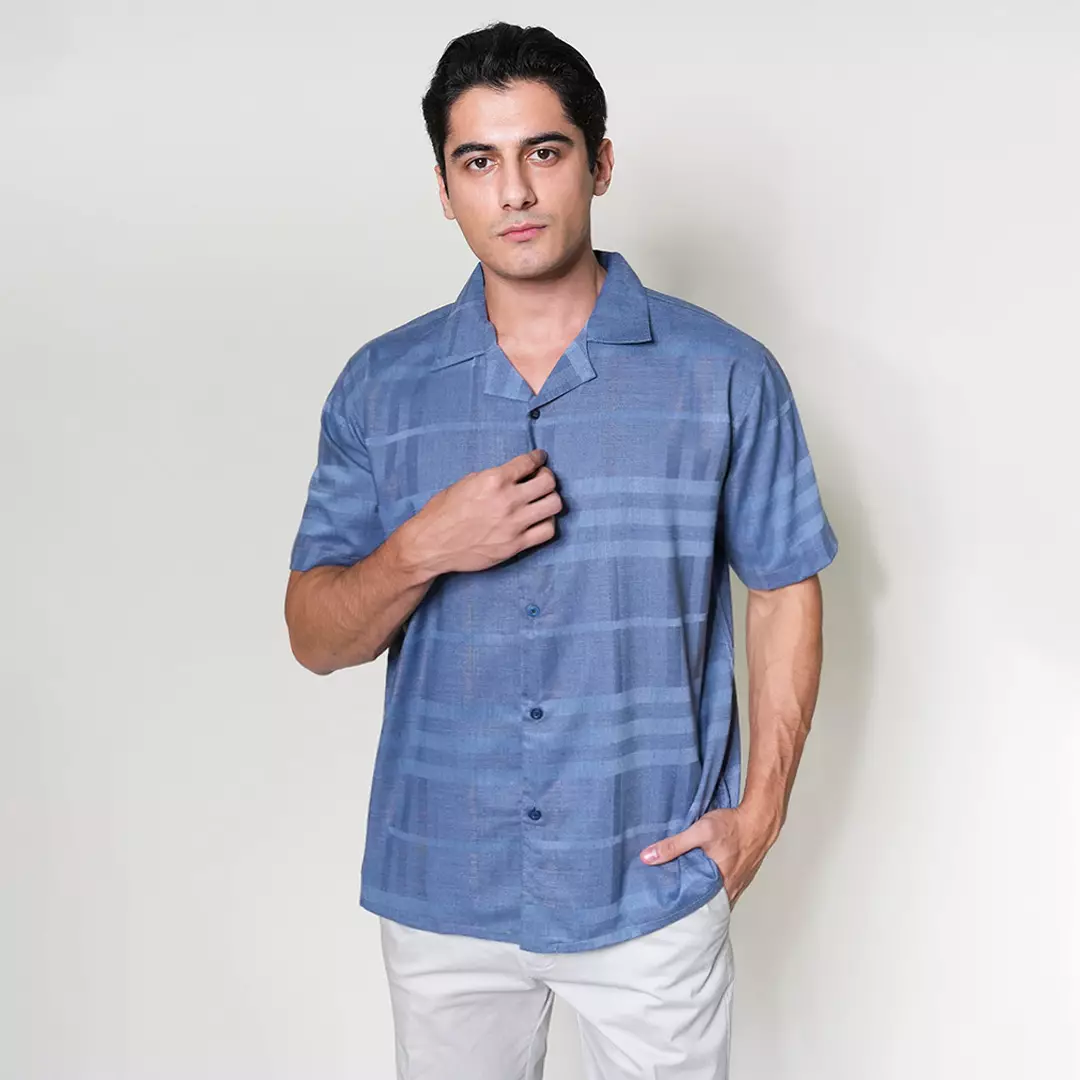 Casella Kemeja Lengan Pendek Kerah Terbuka | Cuban Camp Bowling Collar Xanlos Edition 2354 Blue