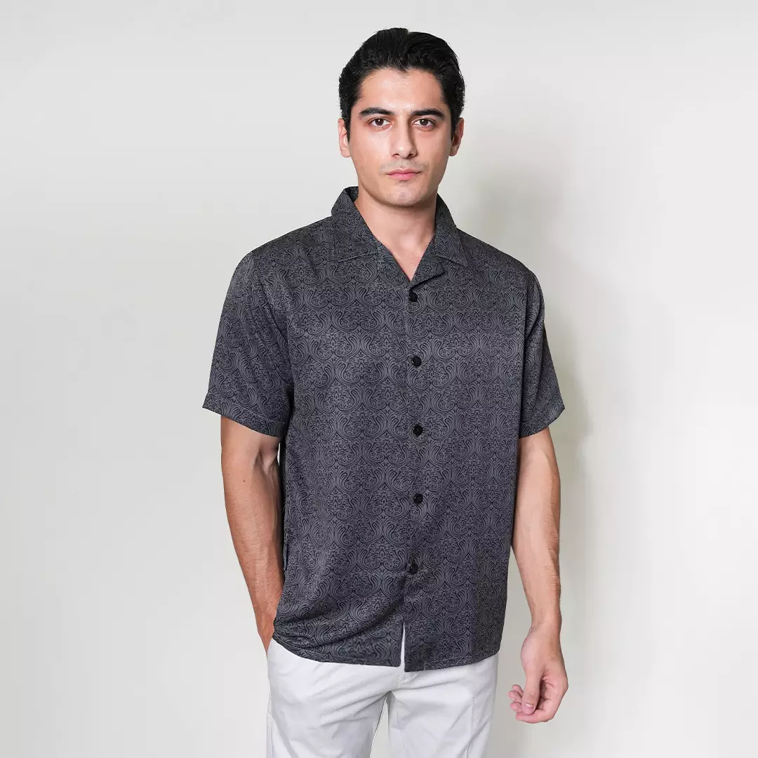 Casella Kemeja Lengan Pendek Kerah Terbuka | Cuban Camp Bowling Collar Xantif Edition 2357 Dark Grey
