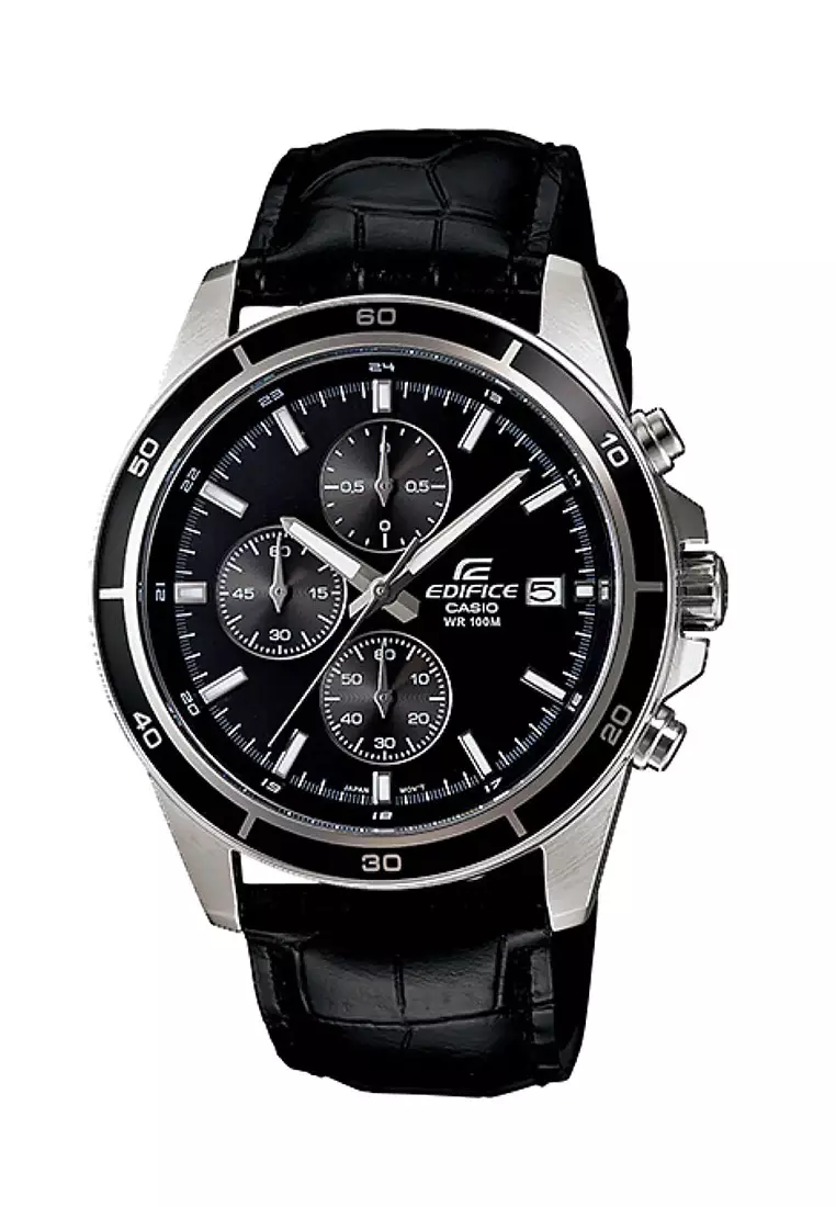 Casio EDIFICE Jam Tangan Pria - Black Silver - Leather Strap - EFR-526L-1AVUDF