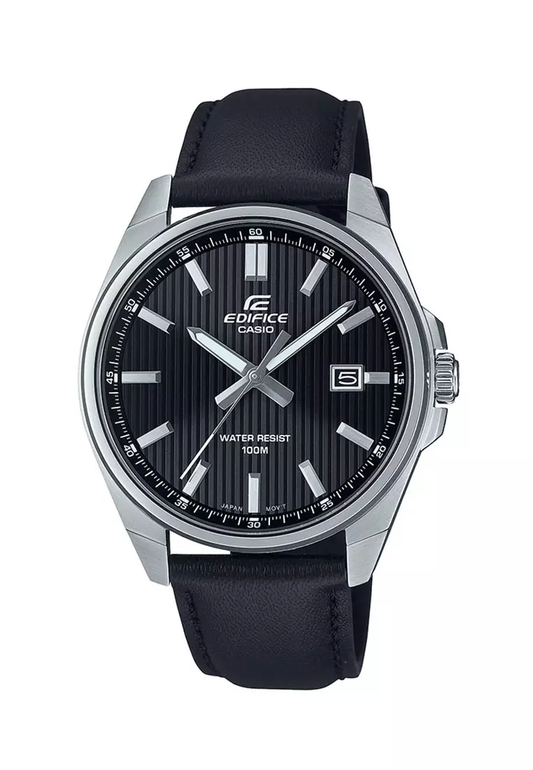 Casio EDIFICE Jam Tangan Pria - Black Silver - Leather Strap - EFV-150L-1AVUDF