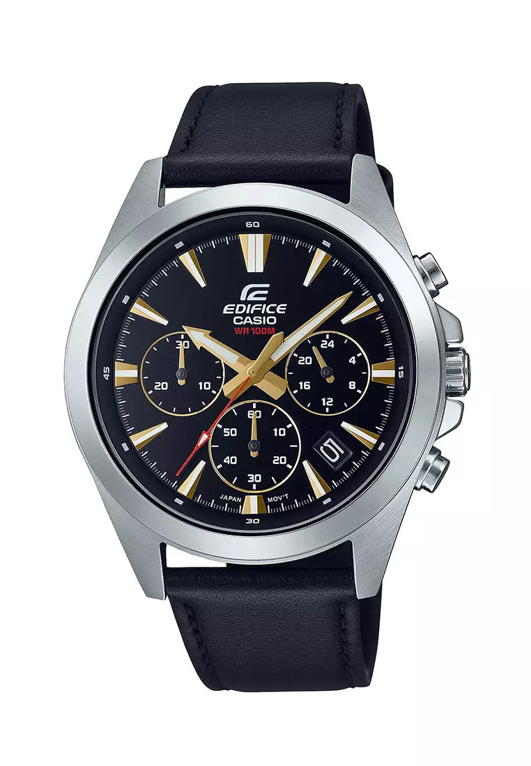 Casio EDIFICE Jam Tangan Pria - Black Silver - Leather Strap - EFV-630L-1AVUDF