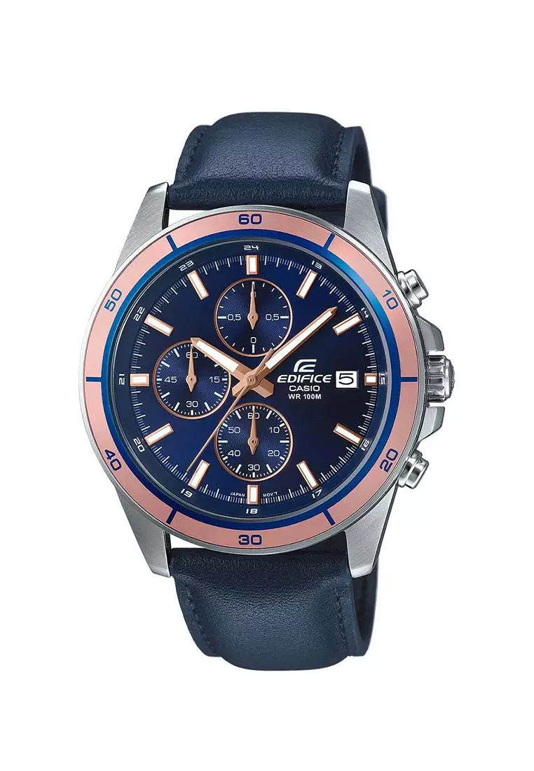 Casio EDIFICE Jam Tangan Pria - Blue Silver - Leather Strap - EFR-526L-2AVUDF