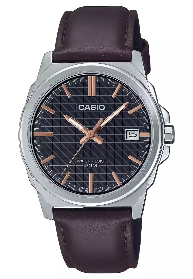 Casio - Jam Tangan Analog Pria - Silver - Brown Leather Strap - MTP-E720L-5AV