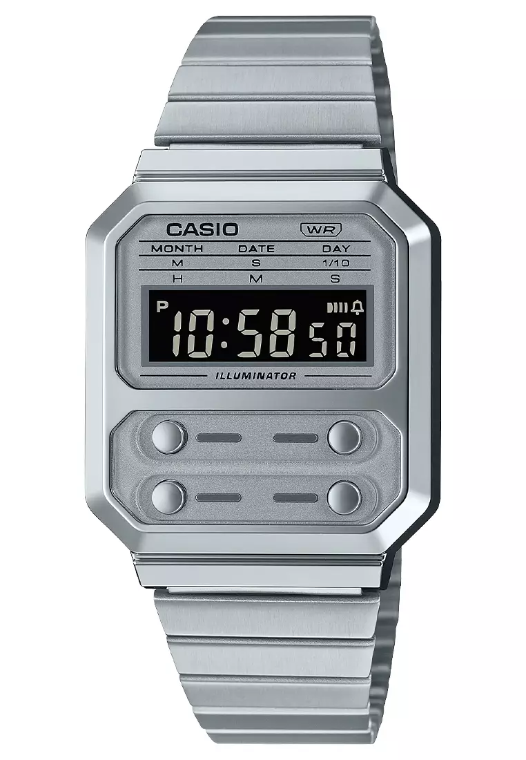 Casio - Jam Tangan Digital Wanita - Silver - Stainless Steel Bracelet - A100WE-7BDF
