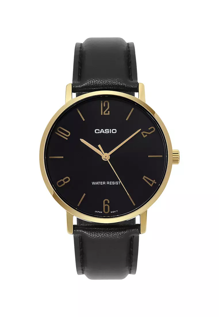 Casio Jam Tangan Pria - Black Gold - Leather Strap - MTP-VT01GL-1B2UDF