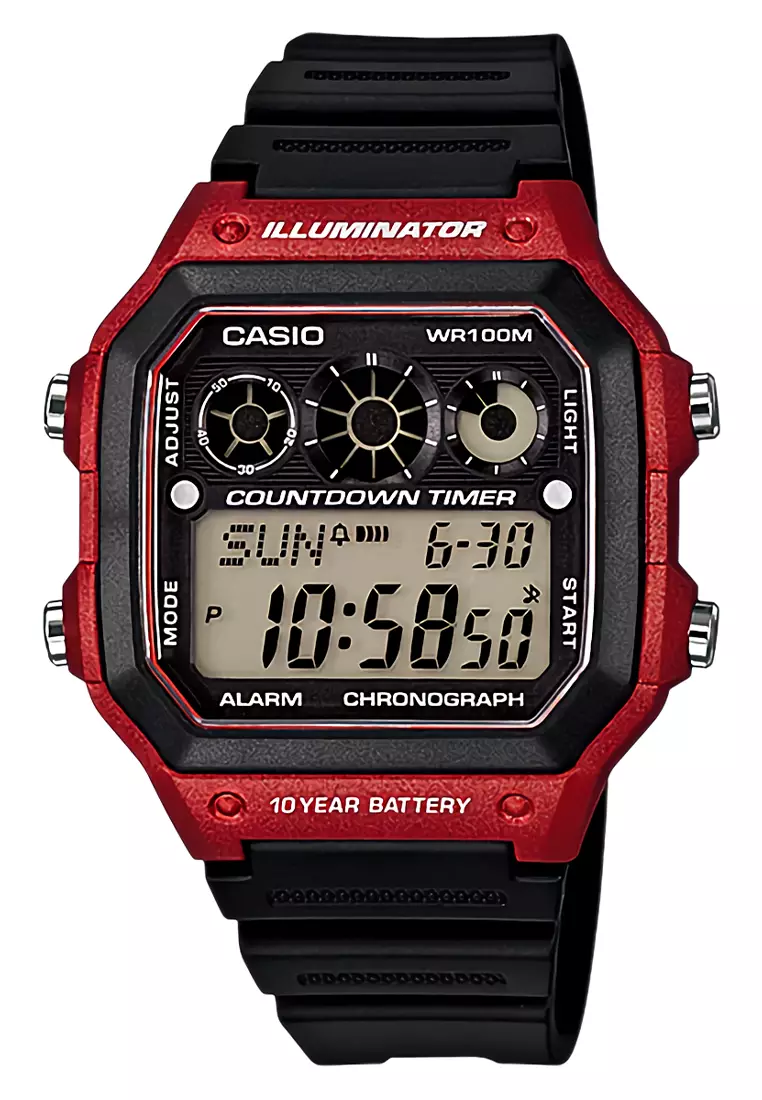Casio - Jam Tangan Pria - Black Red - Resin Strap - AE-1300WH-4AV