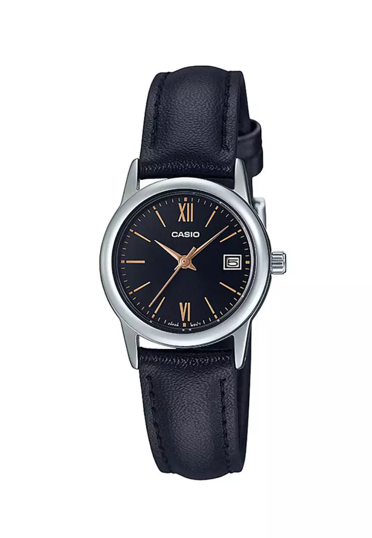 Casio Jam Tangan Pria - Black Silver - Leather Strap - LTP-V002L-1B3UDF