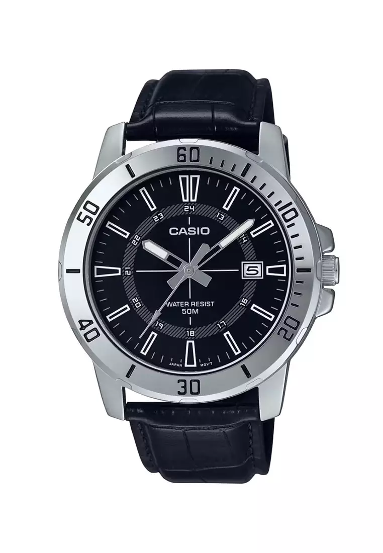 Casio Jam Tangan Pria - Black Silver - Leather Strap - MTP-VD01L-1CVUDF