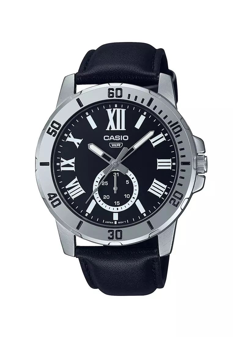 Casio Jam Tangan Pria - Black Silver - Leather Strap - MTP-VD200L-1BUDF