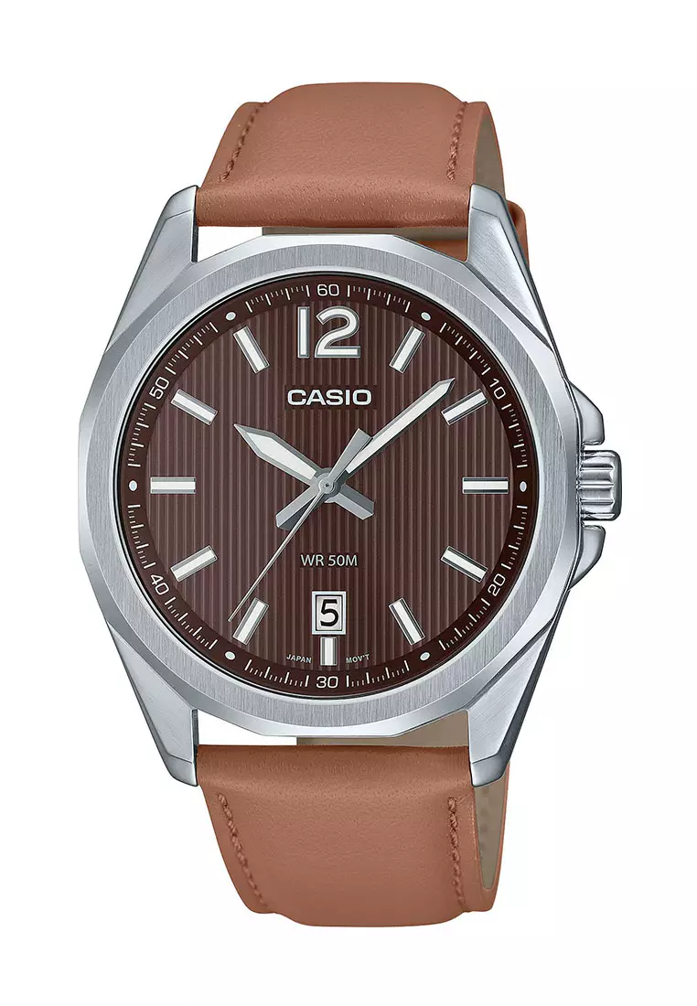 Casio Jam Tangan Pria - Brown Silver - Leather Strap - MTP-E725L-5AVDF