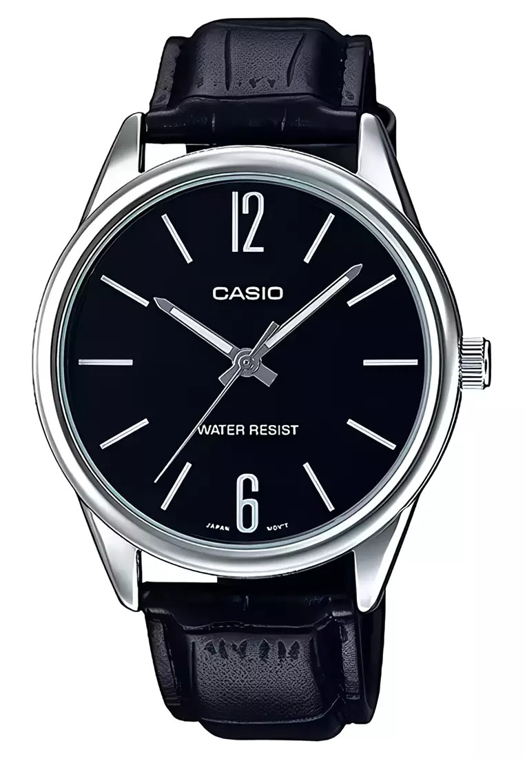 Casio - Jam Tangan Pria - Silver - Black Leather Strap - MTP-V005L-1BUDF