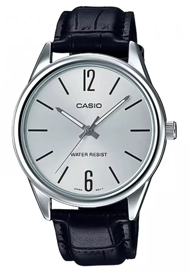 Casio - Jam Tangan Pria - Silver - Black Leather Strap - MTP-V005L-7BUDF