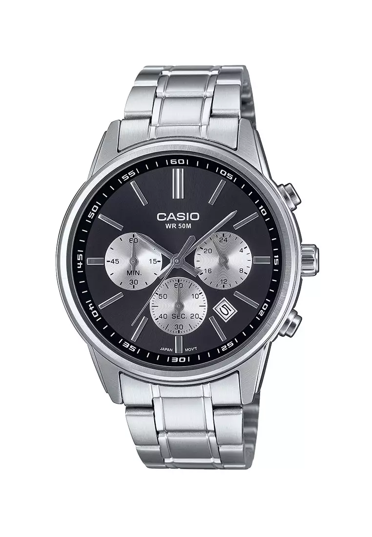 Casio Jam Tangan Pria - Silver Black - Stainless Steel - MTP-E515D-1AVDF