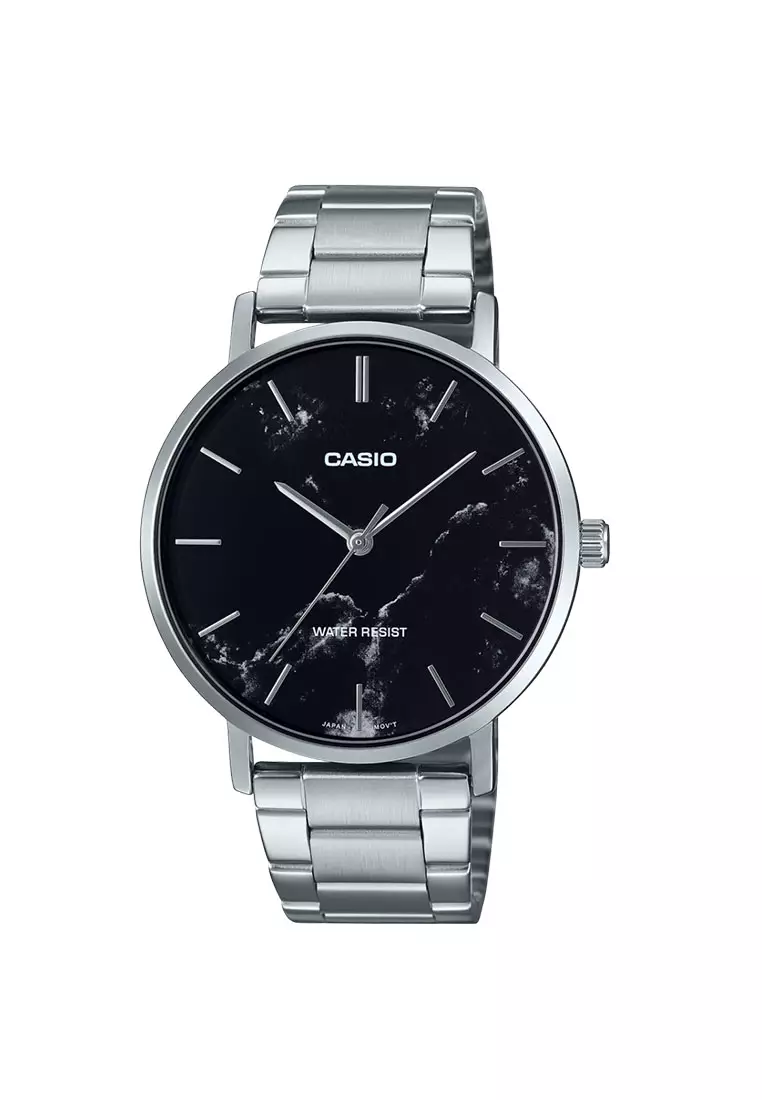 Casio Jam Tangan Pria - Silver Black - Stainless Steel - MTP-VT01DM-1AUDF