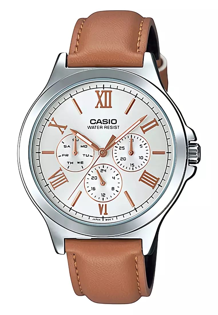 Casio - Jam Tangan Pria - Silver - Brown Leather Strap - MTP-V300L-7A2UDF