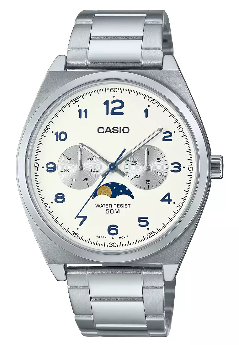 CASIOCasio Moon Phase Chronograph - Jam Tangan Analog Pria - Silver White - Stainless Steel - MTP-M300D-7AV3000001.002400000.00