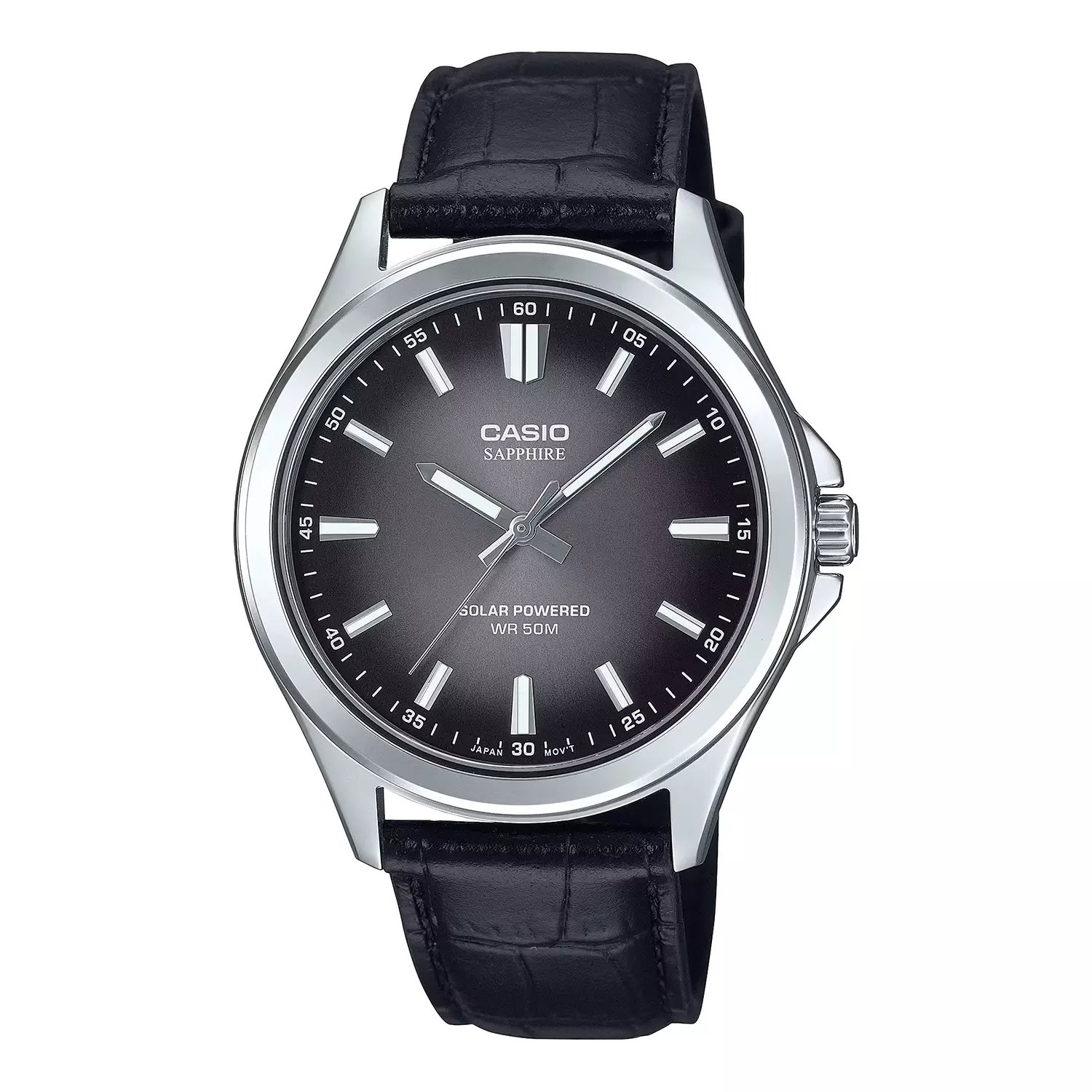 Casio Sapphire Glass - Solar Powered - Jam Tangan Analog Pria - Silver Case - Black Leather Band - MTS-RS100L-1AV