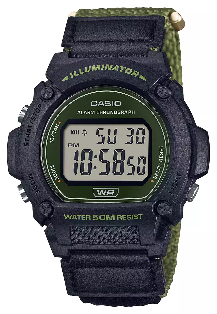 Jam Tangan Digital Pria Casio W-219HB-3AV Green Canvas Strap