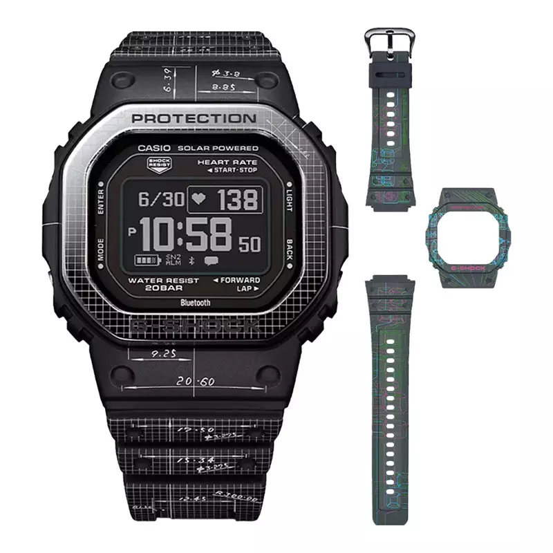 Jam Tangan Pria Casio G-Shock DW-H5600EX-1DR 40th Anniversary Smartwatch G-Squad Resin Band + Extra Bezel And Band