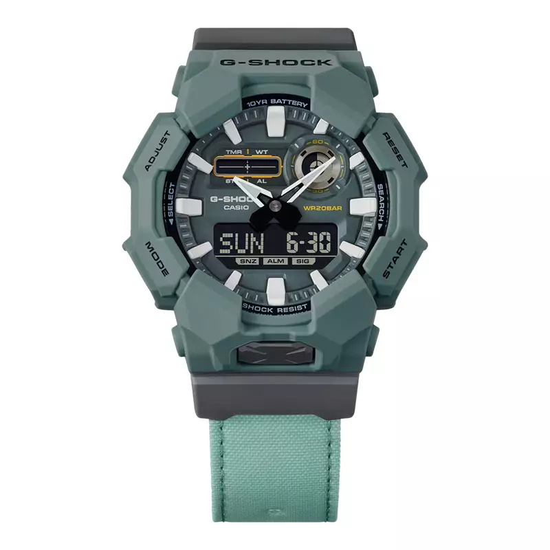 Jam Tangan Pria Casio G-Shock GA-010CE-2ADR Analog Digital Dial Blue CORDURA® re/cor„¢ Nylon Band