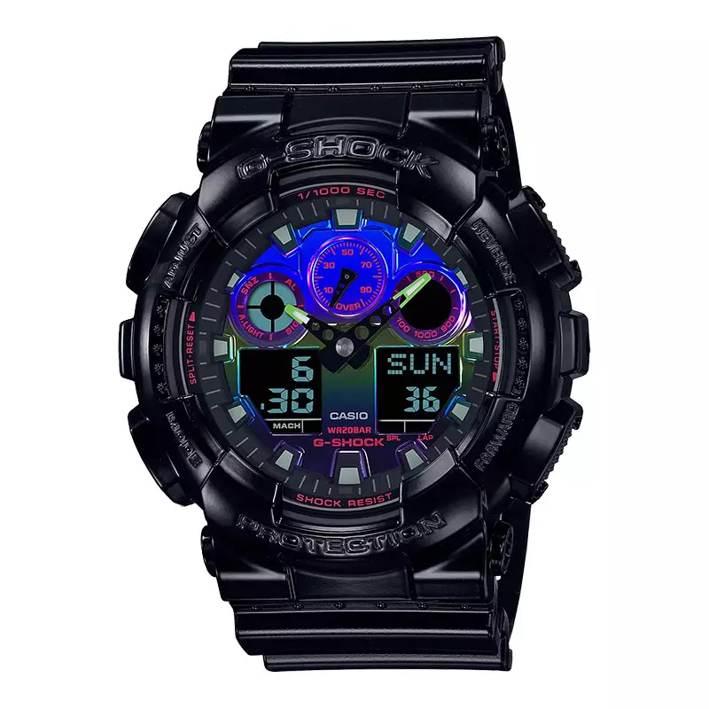 Jam Tangan Pria Casio G-Shock GA-100RGB-1ADR Virtual Rainbow Digital Analog Dial Black Resin Band