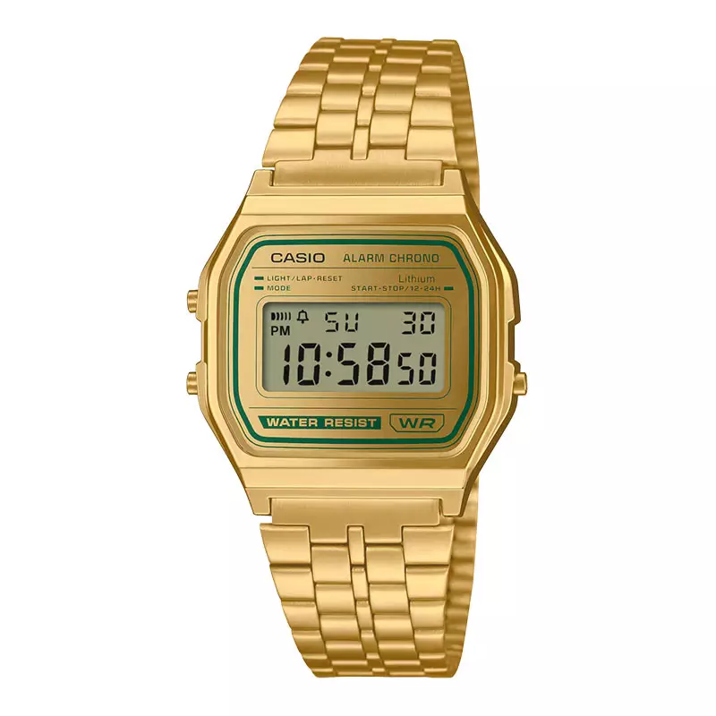 Jam Tangan Pria Casio General A158WEGV-9ADF A158 Digital Dial Gold Stainless Steel Strap