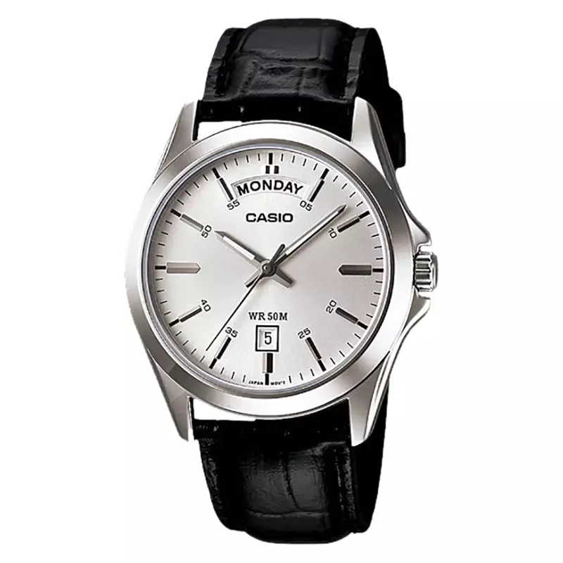 Jam Tangan Pria Casio General MTP-1370L-7AVDF Enticer Men Analog Silver Dial Black Leather Strap