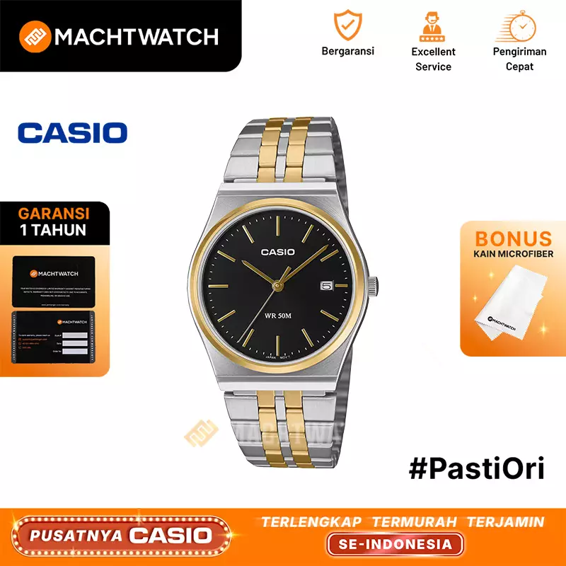 Jam Tangan Pria Casio General MTP-B145SG-1AVDF Black Dial Dual Tone Stainless Steel Band