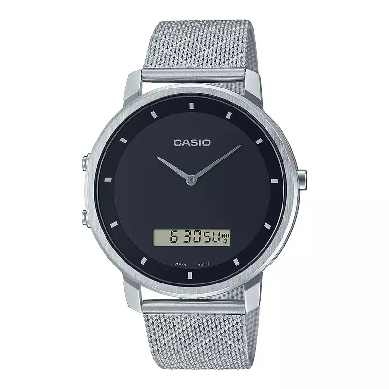 Jam Tangan Pria Casio General MTP-B200M-1EDF Dress Men Black Digital Analog Dial Mesh Band