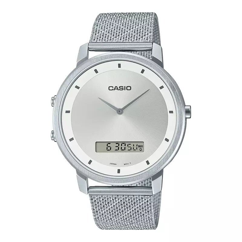 Jam Tangan Pria Casio General MTP-B200M-7EDF Dress Men Silver Digital Analog Dial Mesh Band