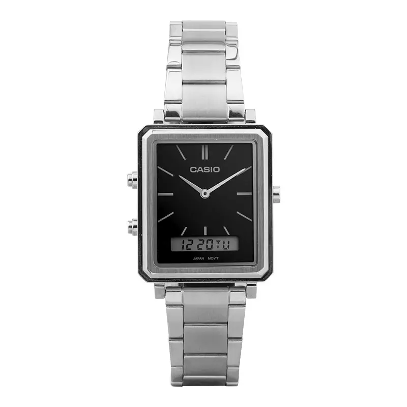Jam Tangan Pria Casio General MTP-B205D-1EDF Men Black Digital Analog Dial Silver Stainless Steel Band