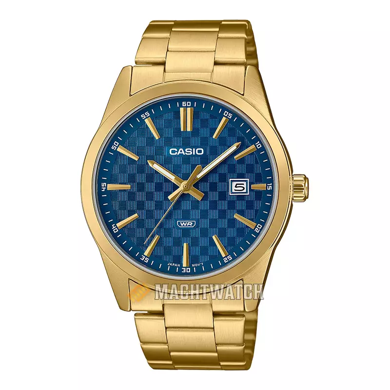 Jam Tangan Pria Casio General MTP-VD03G-2AUDF Dress Men Blue Dial Gold Stainless Steel Band
