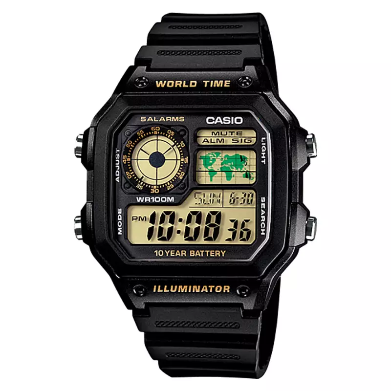 Jam Tangan Pria Digital Casio Standard AE-1200WH-1BVDF AE1200 AE-1200WH Black Resin Band