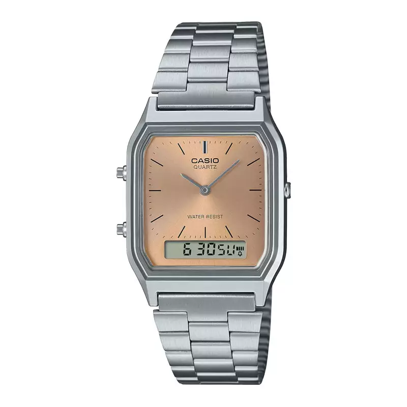 Jam Tangan Unisex Casio General AQ-230A-4AMQYDF AQ230 AQ-230A Vintage Digital Analog Dial Stainless Steel Band