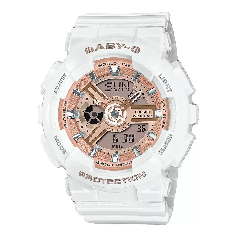 Jam Tangan Wanita Casio Baby-G BA-110X-7A1DR Digital Analog Rose Gold Dial White Resin Band