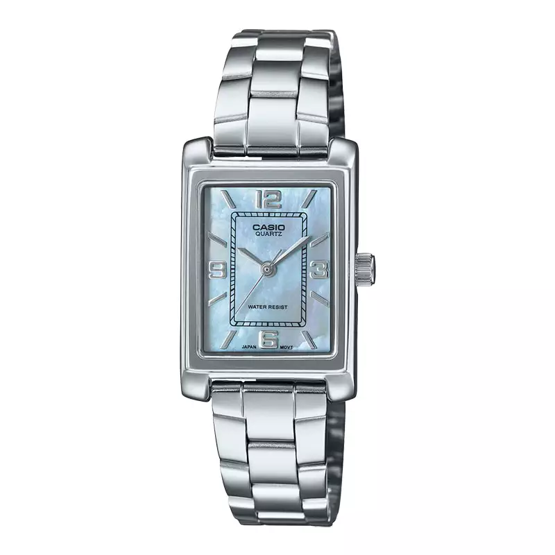 Jam Tangan Wanita Casio General LTP-1234DS-2ADF Tank Ladies Mother Of Pearl Dial Stainless Steel Band
