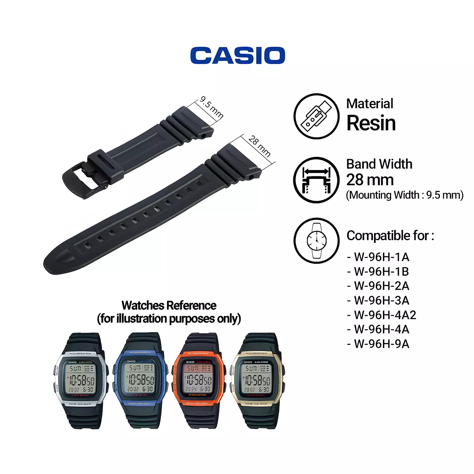 CASIOStrap Tali Band Jam Casio - Black Resin Band - 28 mm - W-96H Series420001.00336000.00