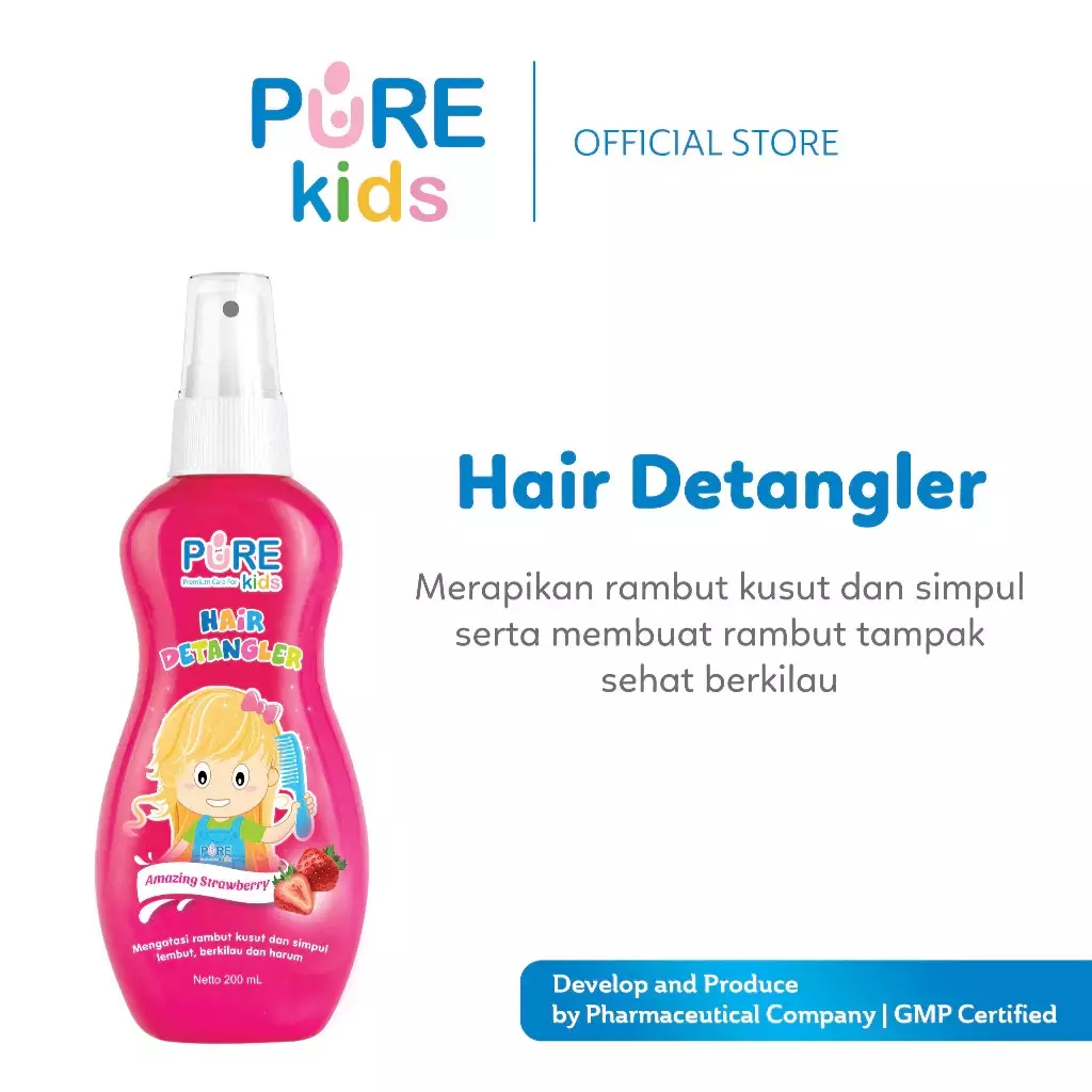Pure Kids Hair Detangler Spray 200 ml – Penghilang Rambut Kusut Anak, Anti Lengket, Wangi Buah 200 ml Strawberry