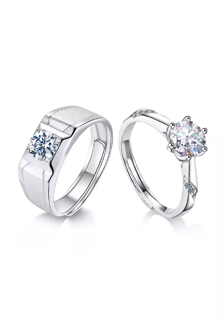 Cincin Wanita Berlian Berlapis Platinum Anti Pudar Ukuran Bebas Pria Wanita Tunangan Cincin Couple