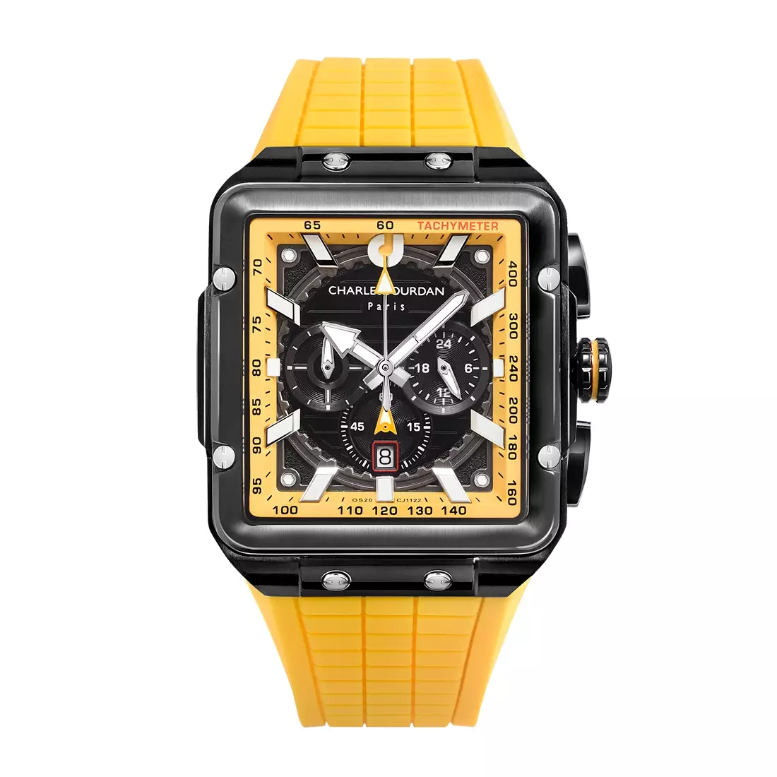 Charles JourdanJam Tangan Pria Charles Jourdan Ludis Square Quartz Black Yellow Silicone Strap CJ1122-1722C Original5900000.004720000.00
