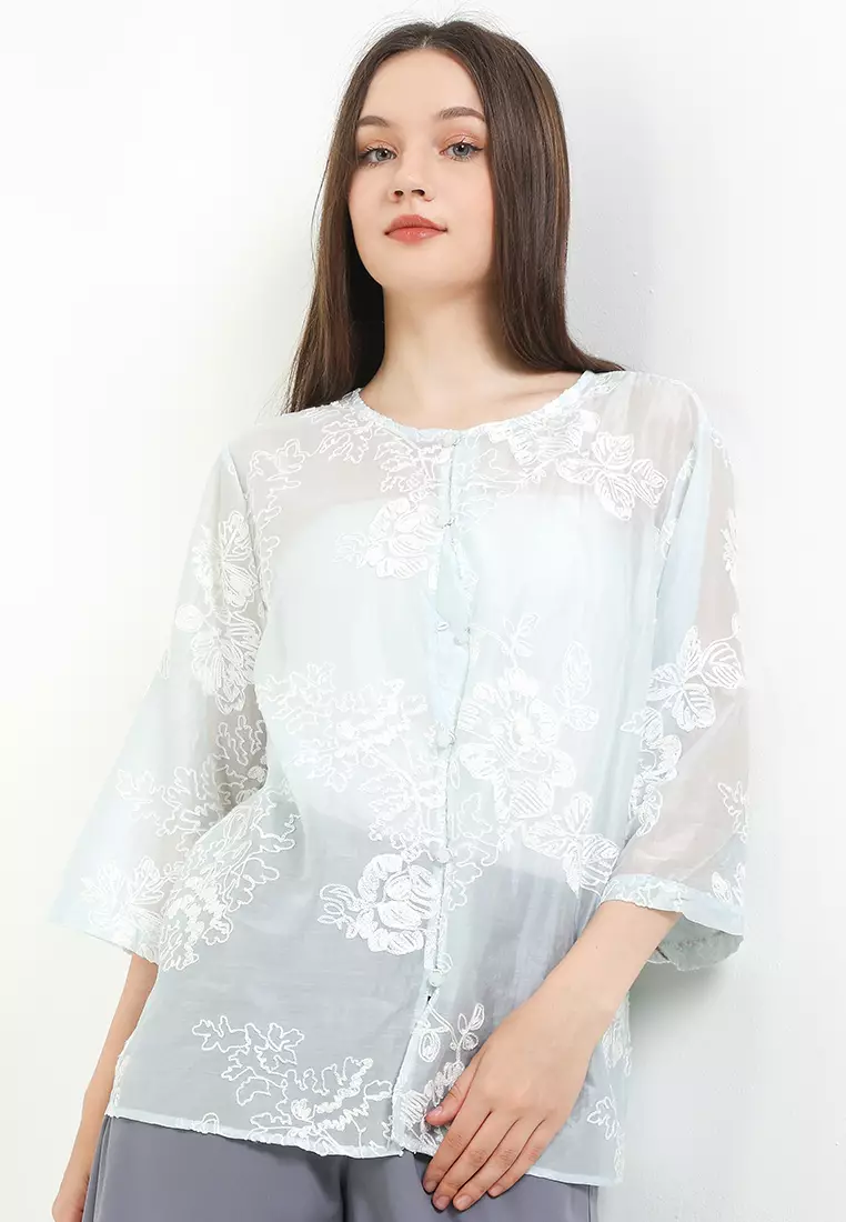 Chic Simple3/4 Sleeves Flo Emb Sheer Blouse W/ Jackitte Buttons445000.00