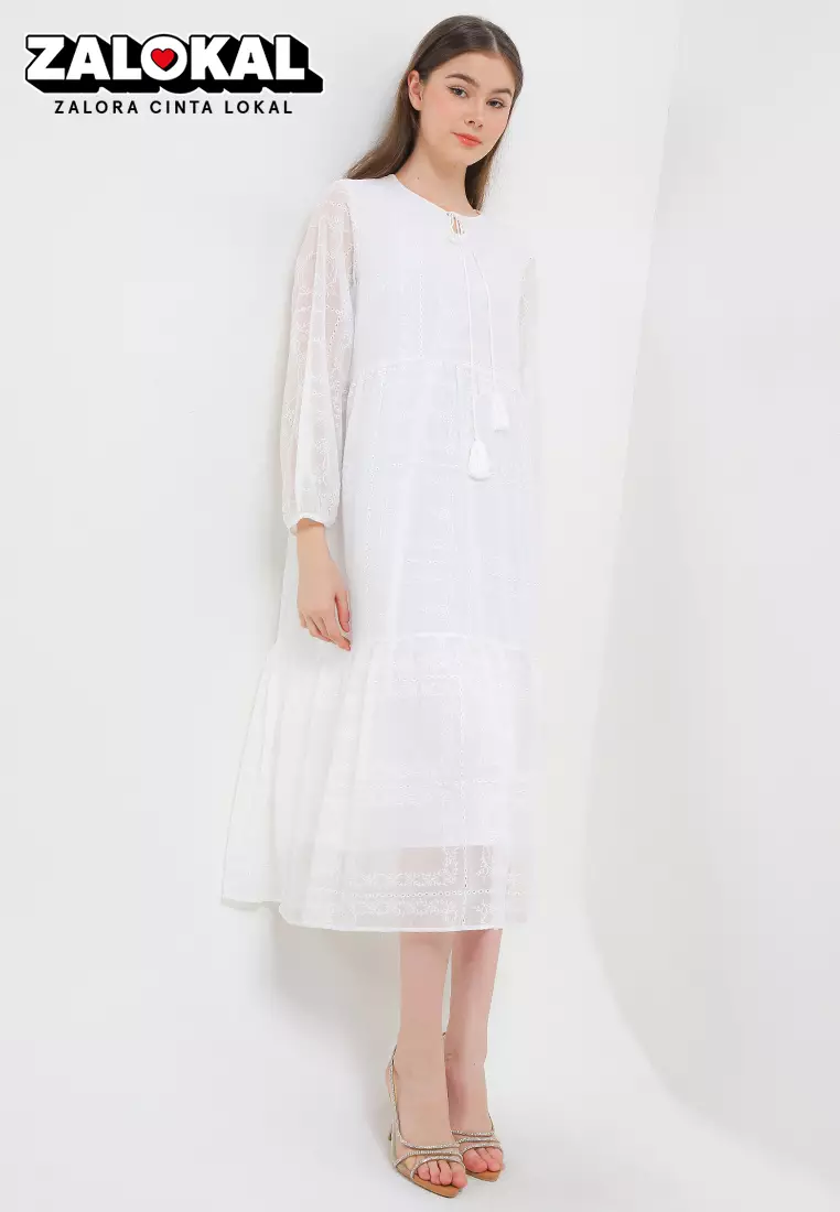 3 Tier Emb Chiffon Long Dress W/ Tassels