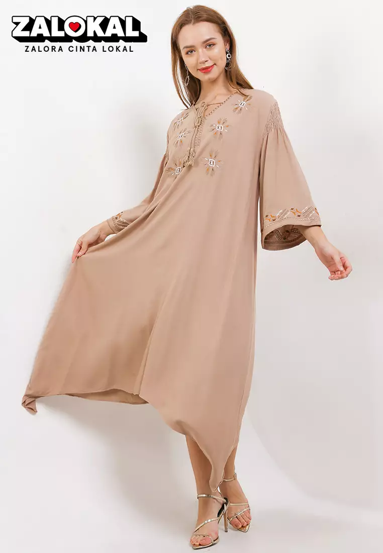 Chic SimpleAsym Hem Emb Linen Smocked Detail On Sleeve Tunic998000.00399200.00