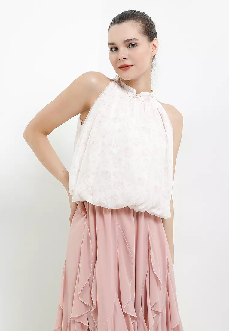 Chic SimpleBalloon Hem Flo Print Halter Qipao Top Lined W/ Tulle656000.00328000.00